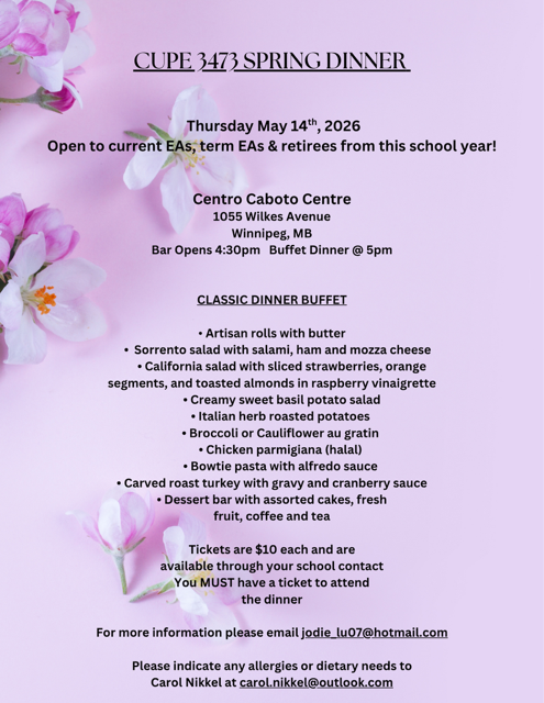 CUPE 3473 and its members would like to Neil and Colleen for all their hard work and contributions to the Executive and wish them all the best going forward.