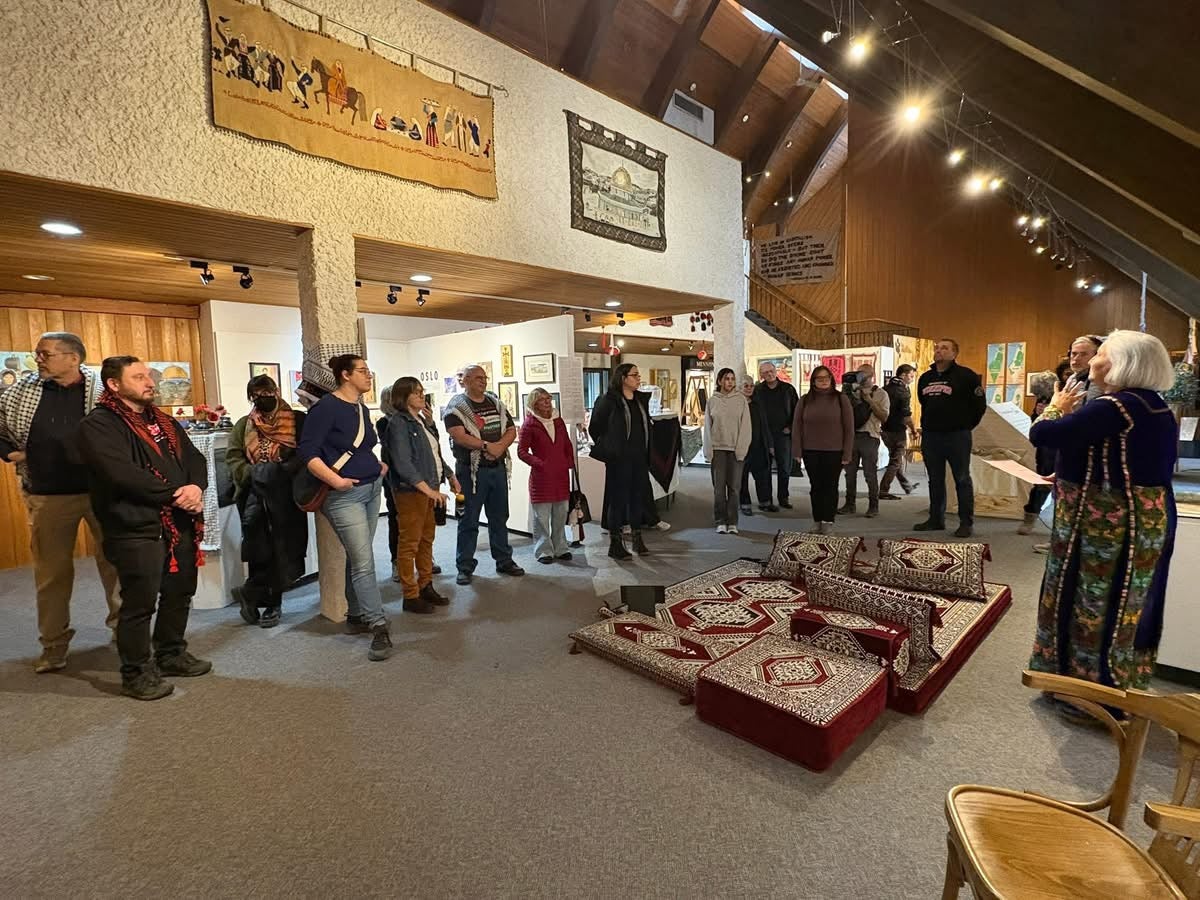 Hellen and Lana joined CUPE Manitoba’s Global Justice Committee, the committee hosted an afternoon at the “Land Remembers, Palestine: Courage Resilience, Resistance” exhibit currently on view at the MHC Gallery.